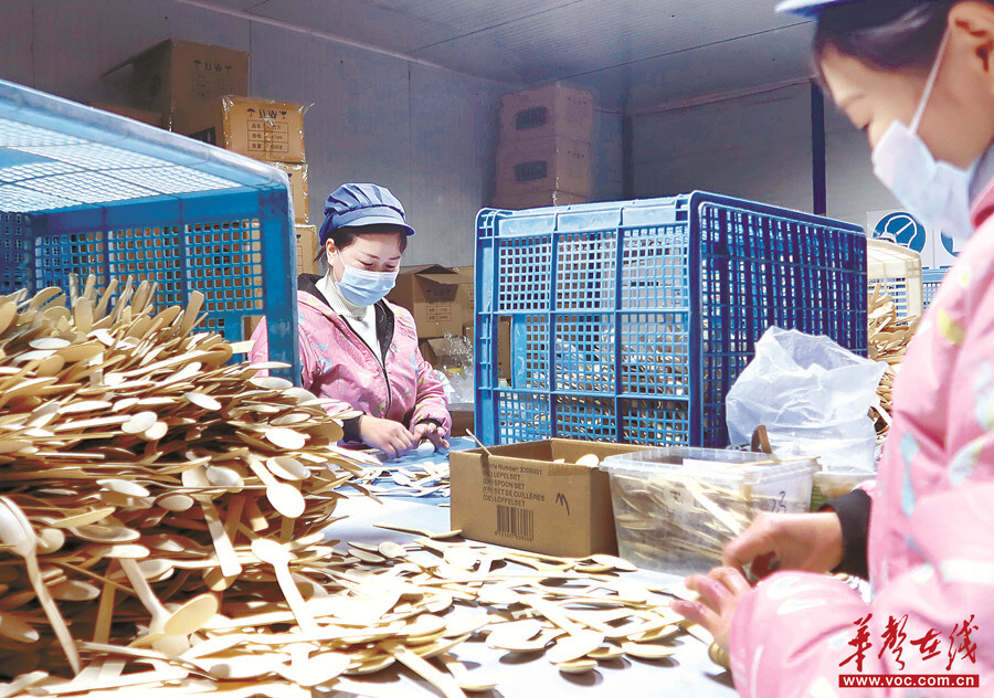 1月9日,城步產業開發區城步佳能農林科技開發有限公司生產車間,工人在包裝竹制西式餐具。近年來,當地依托豐富的南竹資源,積極發展南竹深加工產業,帶動農民就業增收。